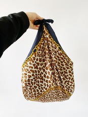 レオパードパターンがGoodなイタリア製ビンテージスカーフです。多種多様の使い方ができるのでお好きに使ってください。個人的オススメは大判サイズのモノでしかできない " エコバック" にするお洒落な使い方。