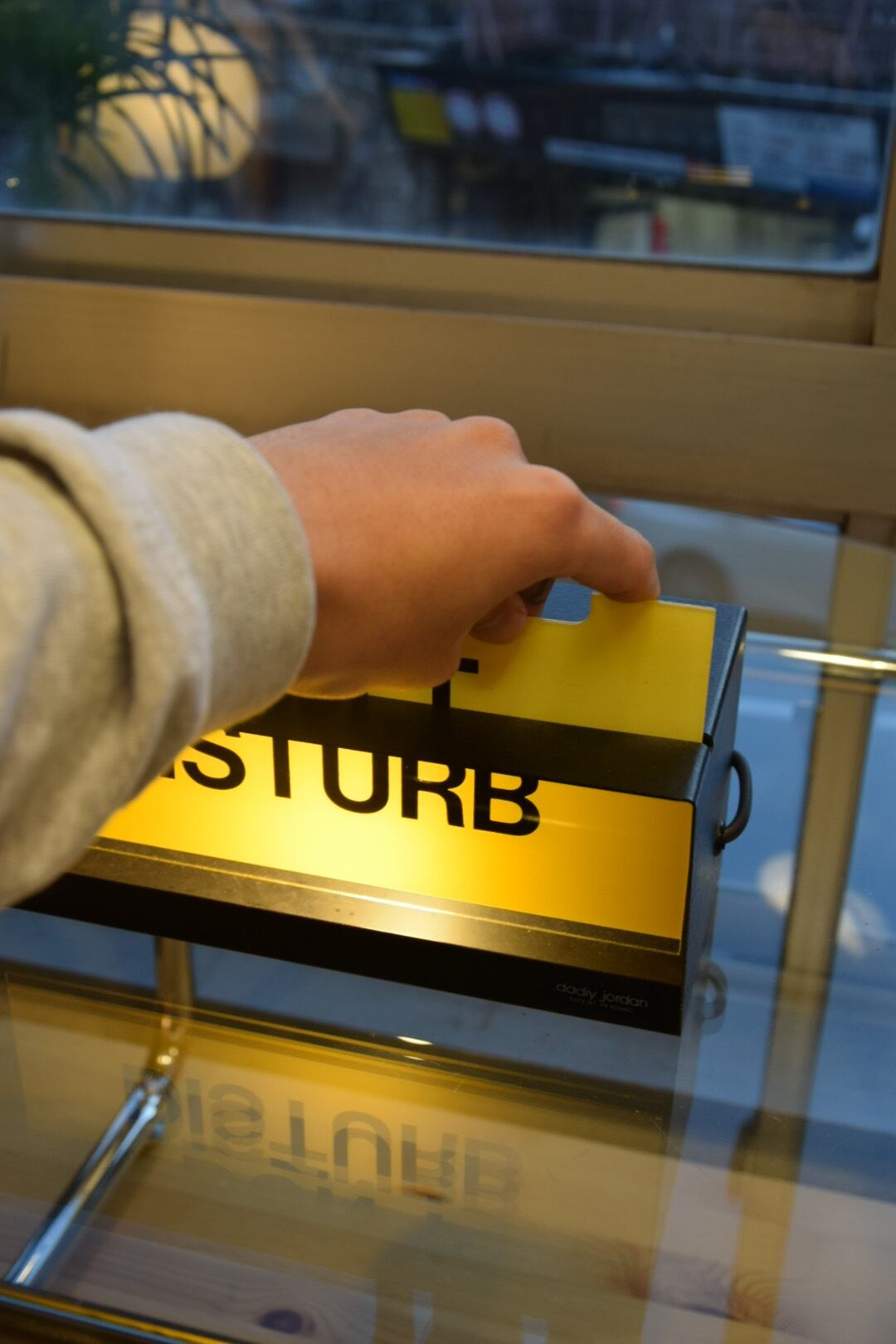 外側の作りはステンレス、 " ON AIR " と " DON'T DISTUR " のアクリルプレートは入れ替え可能。