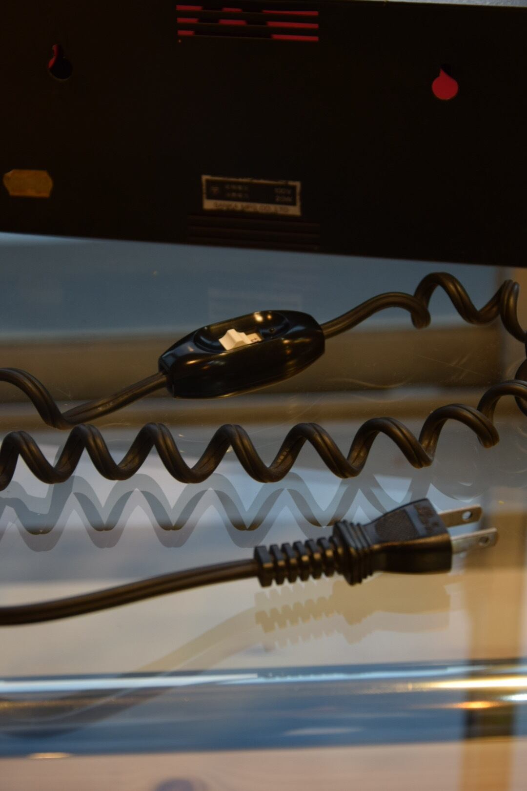 おそらく当時、実際にラジオブースなどで使用されていた物だと思います。背面に壁掛け用の穴もあり、壁に付けて使用も可能。